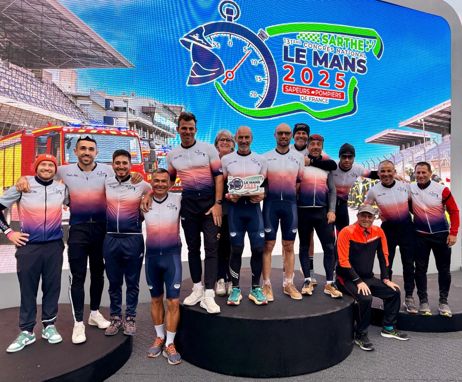 Chaque année des sapeurs pompiers partent de leur département en vélo pour rejoindre leur Congrès National. Cette année nos sapeurs-pompiers varois rallient Le Mans à vélo au départ de Cotignac, le village de Philippe, membre du VCB et créateur des parcours du défi. Au programme, découverte de la Sarthe et roulage sur le circuit Bugatti.