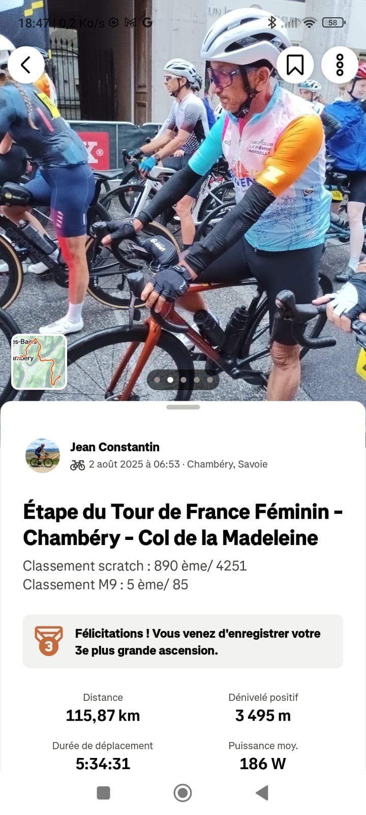 Présence de Jean sur "Watch the Femmes" Etape du Tour, cyclosportive ouverte à tous. 5500 participants dont un tiers de femmes. Chambéry, Col de la Madeleine, 117 km et 3540 d+.