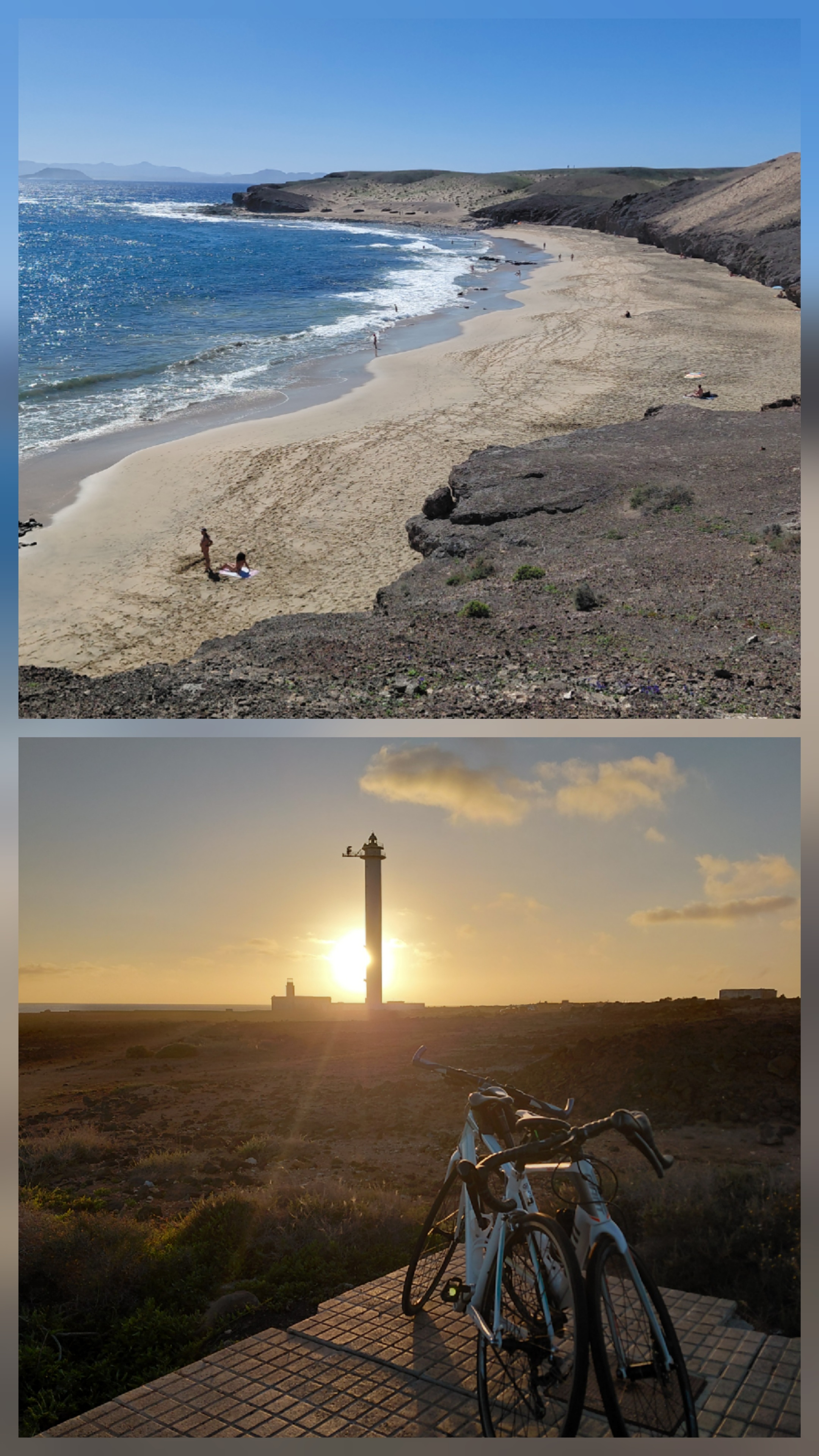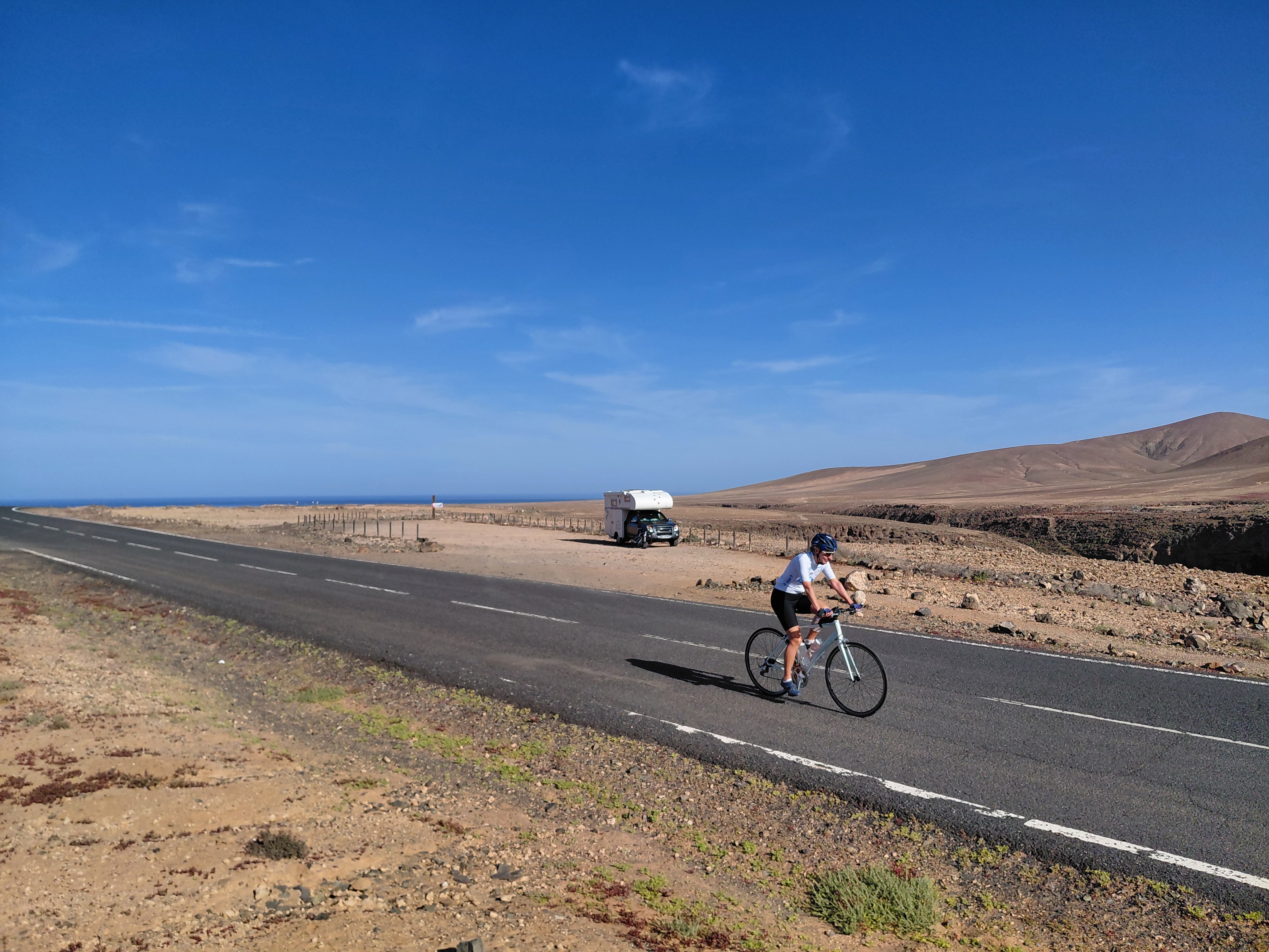 Plus sauvage que Lanzarote, on y rencontre moins de touristes et donc moins de cyclistes (peu de magasins de cycles). Cependant, c’est une belle destination pour faire du vélo et du balnéaire. Comme à Lanzarote, pas de gros dénivelés.