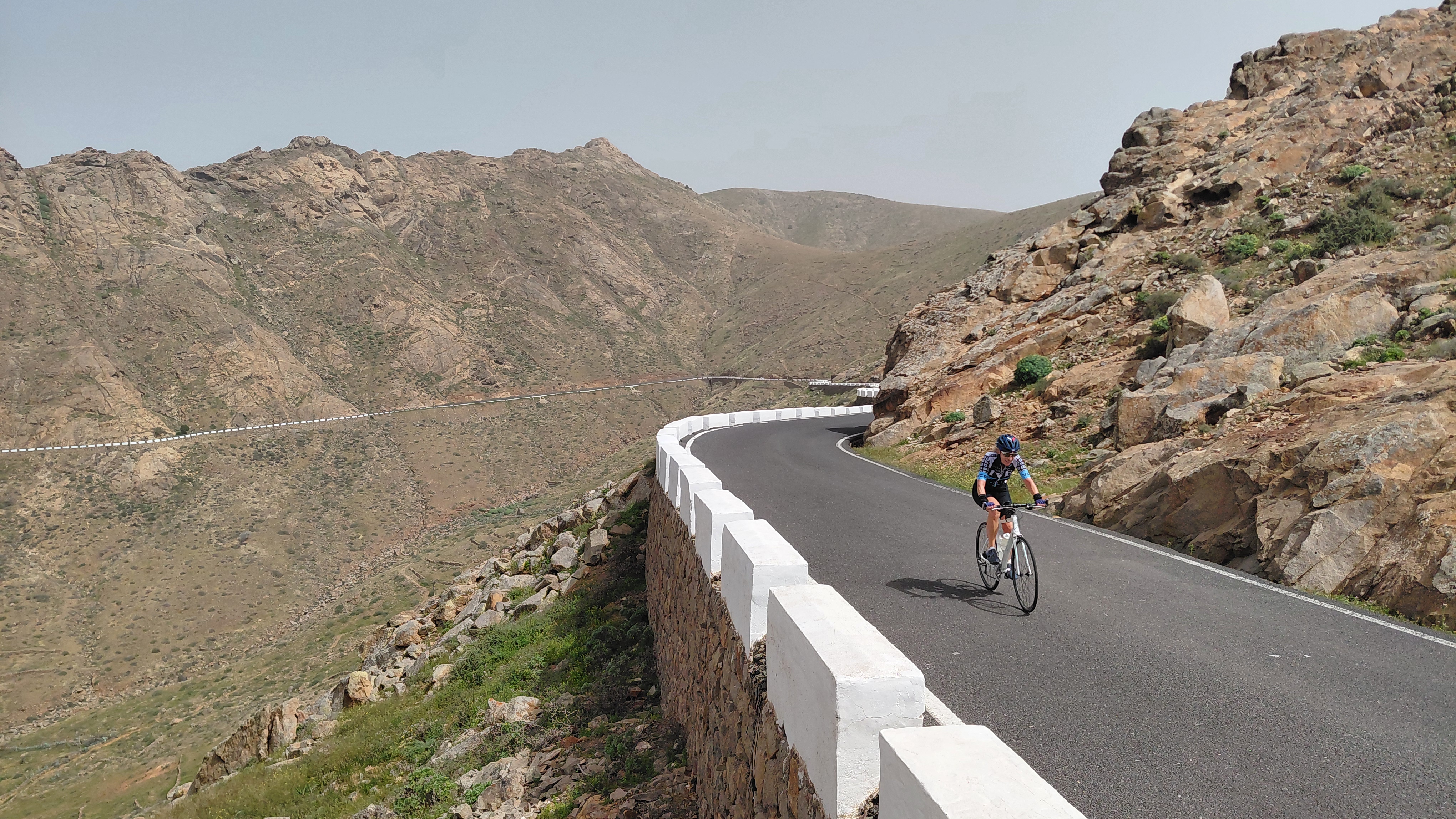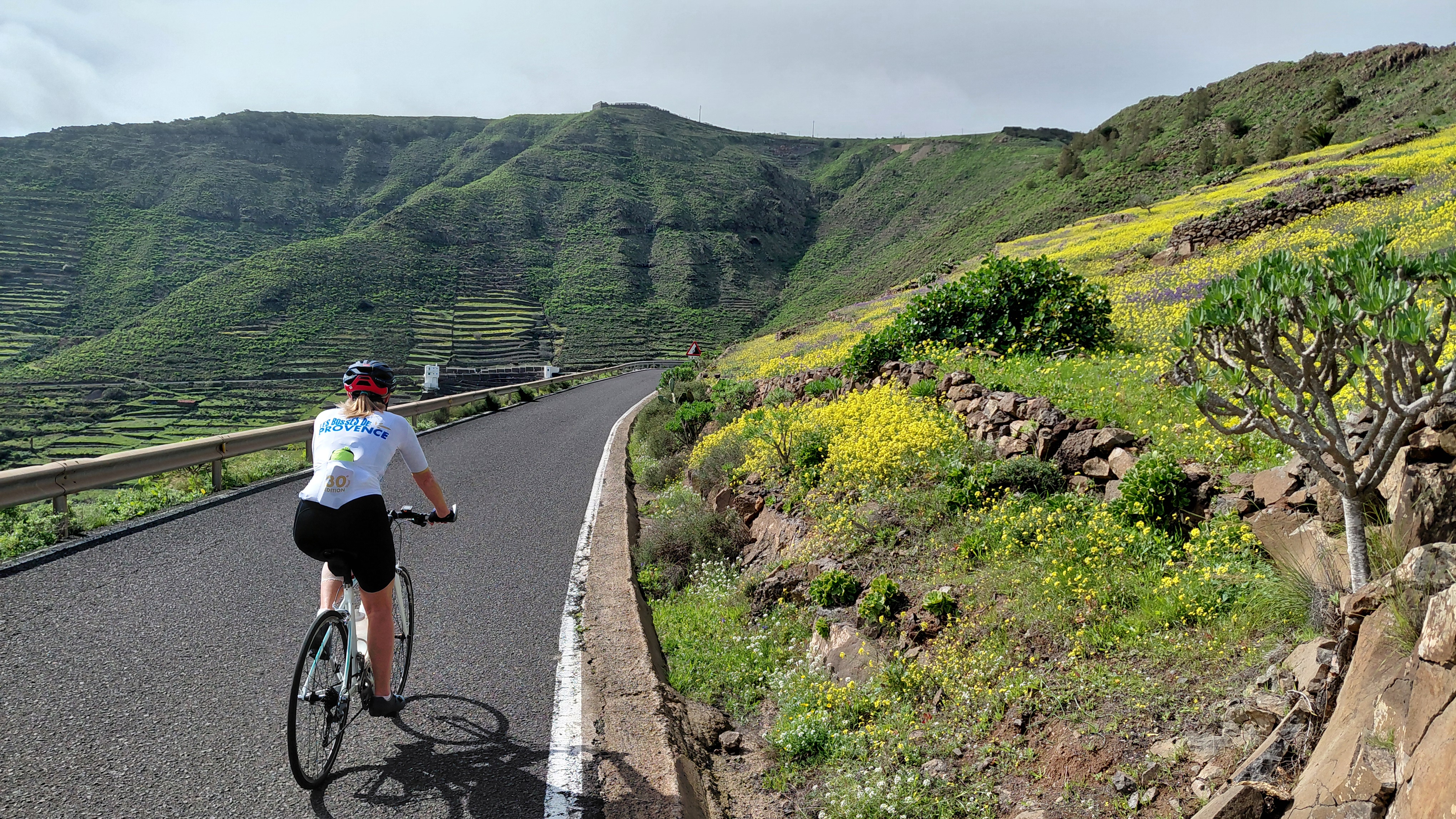 Nous espérons que ce résumé vous aura donné envie de venir rouler aux Canaries mais attention, si l’on parle de climat printanier, il ne faut cependant pas négliger le vent qui souffle fort, souvent très très fort, une caractéristique à laquelle nous nous sommes habitués mais qui durcit les sorties de vélo et qui nous fait quelquefois regretter de ne pas être Kite-surfer plutôt que cycliste.