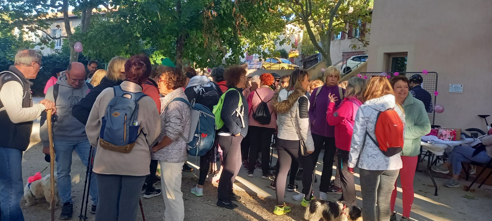 9h30, échauffement des marcheurs avec la musique de Cloclo, et départ dans le même temps des différentes randonnées Vélos. Les marcheurs allaient réaliser le circuit pédestre au pieds du Bessillon, des intervenants médicaux étaient présents sur le circuit, pour faire de la prévention, et présenter du matériel paramédical.