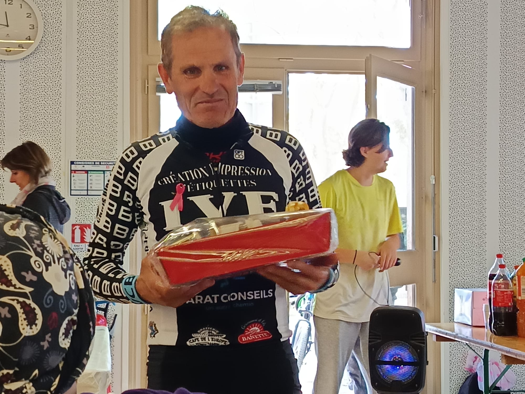 Le retour des marcheurs s'est fait vers 11h, un verre de l'amitié en attendant le buffet offert à 12h, des intervenants médicaux prenaient la parole. puis les cyclistes ont commencé à arriver, et le buffet était le bienvenu.