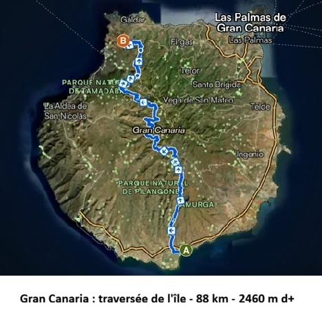 Parcours réalisé par Nathalie et Jean aux îles Canaries.